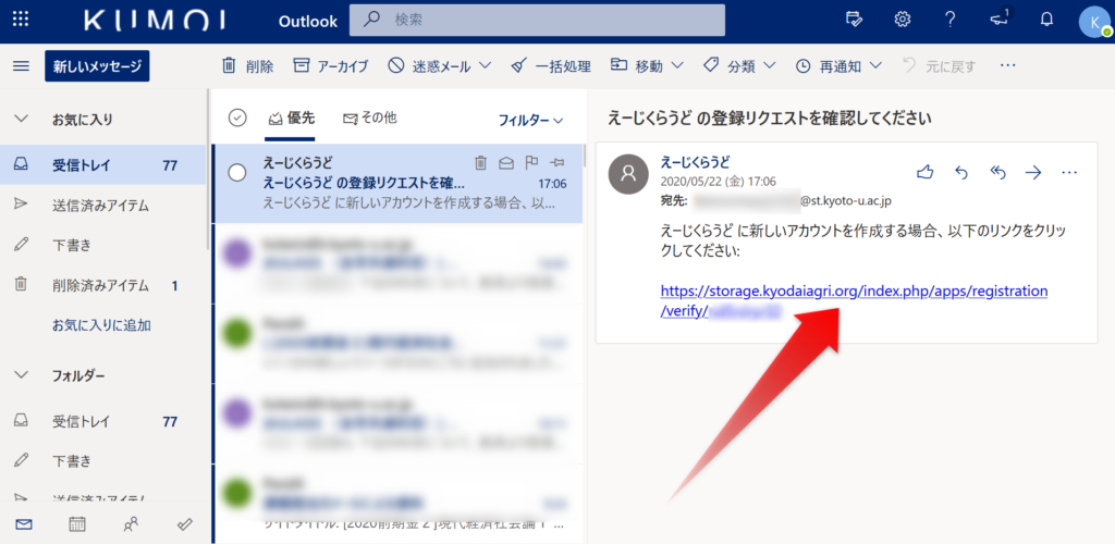 ⅲKUMOIに届いたメールのリンクへアクセスしてください.